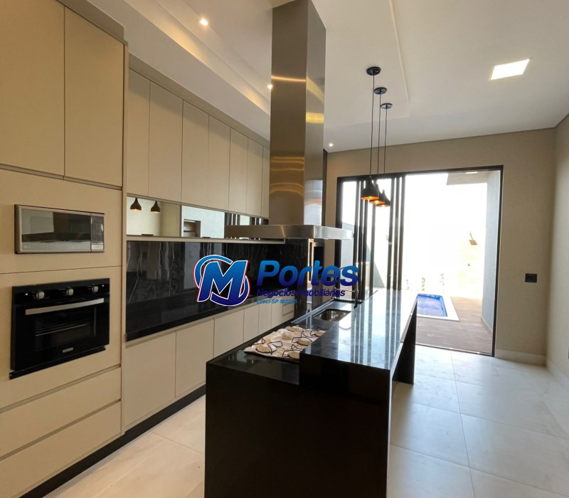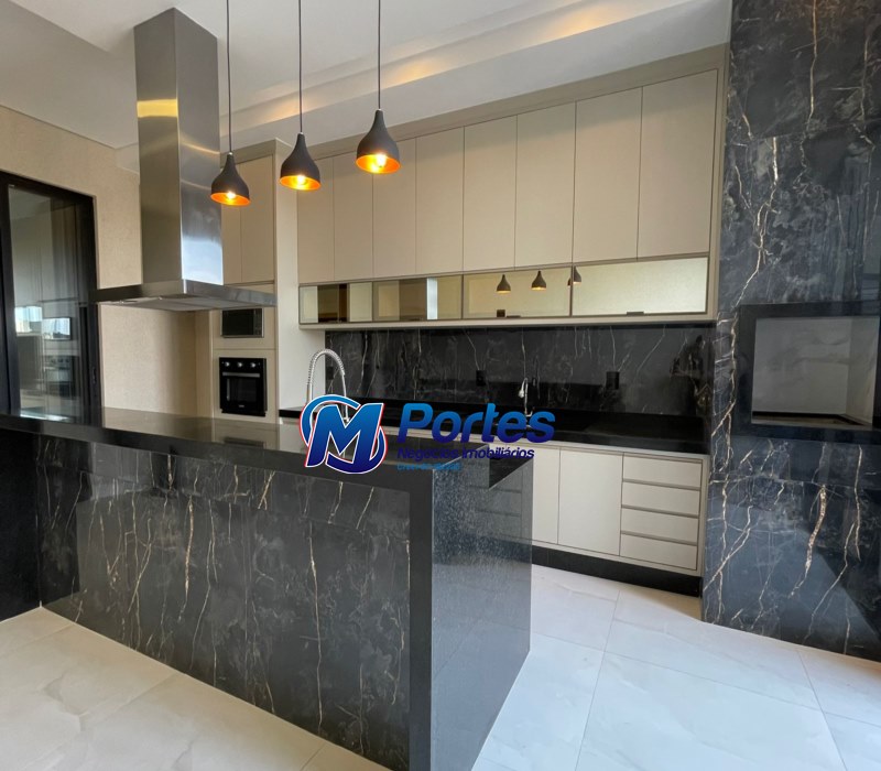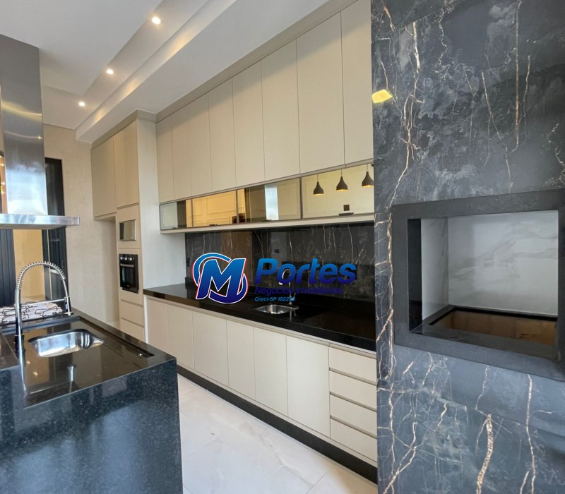 Cozinha planejada completa com coifa cooktop, integrada a varanda gourmet